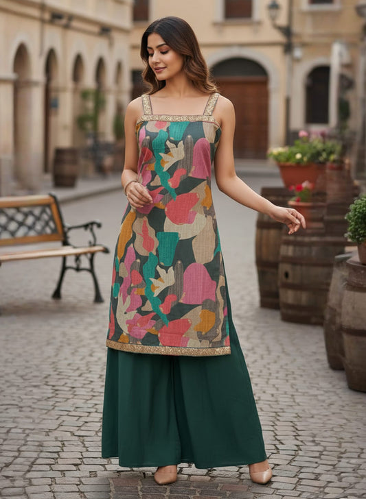Elevate your ethnic wardrobe with this sophisticated crack silk spaghetti set, designed for versatile styling...