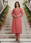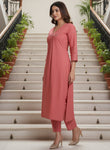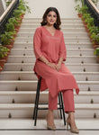PURE COTTON A-LINE EMBROIDERED KURTA PANT SET