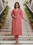 Elevate your ethnic wardrobe with this sophisticated A-line kurta pant set crafted from premium pure cotton. The intricately embroidered kurta features a flattering silhouette that drapes beautifully, while the coordinating pants ensure a polished, complete look. Perfect for festive occasions, family gatherings, or everyday elegance, this set combines traditional craftsmanship with contemporary comfort. The breathable cotton fabric keeps you cool throughout the day, making it an ideal choice for India's warm climate. A timeless investment piece that seamlessly transitions from casual to formal settings.