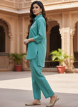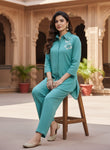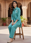 Elevate your ethnic wardrobe with this sophisticated Art Silk Embroidered Co-ord Set, crafted from premium art silk for a luxurious drape and refined finish. This ensemble features intricate embroidery work adorning the shirt . The coordinated set includes decorative addon buttons that enhance the overall aesthetic while adding functional detail. Perfect for festive occasions, celebrations, or elevated everyday wear, this co-ord set combines traditional craftsmanship with contemporary styling. The art silk fabric ensures comfort and breathability, making it ideal for the Indian climate while maintaining its structured silhouette throughout the day.