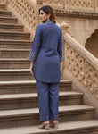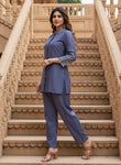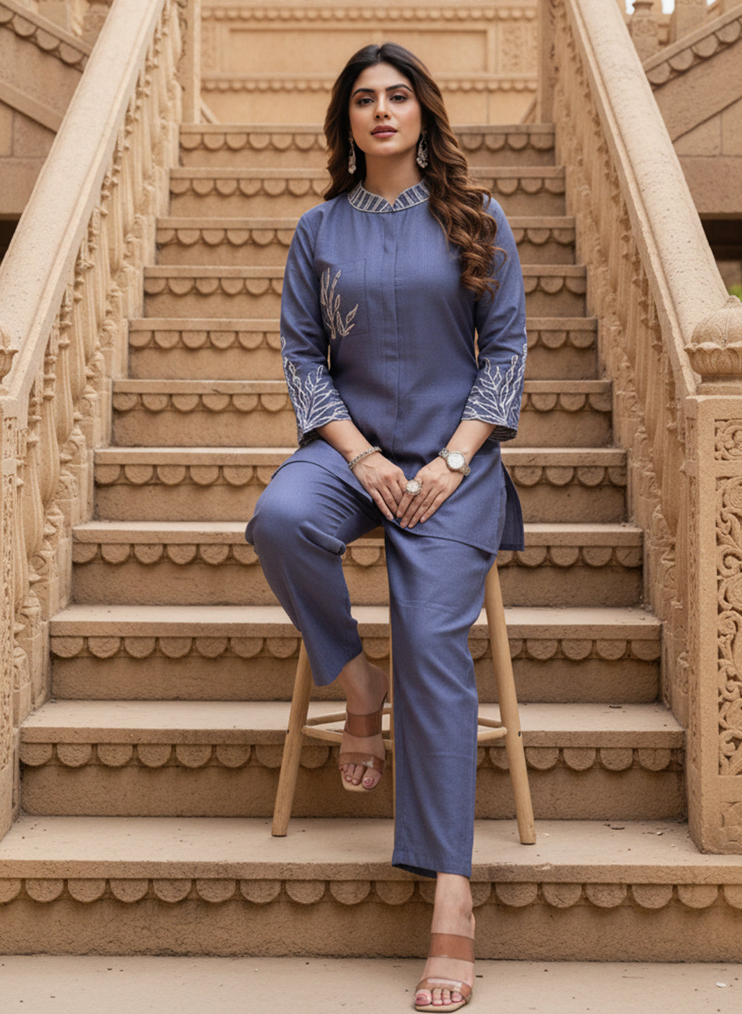 This refined art silk co-ord set combines traditional elegance with modern sensibility. The top showcases exquisite embroidery detailing on the mandarin collar, complemented by practical pockets and contemporary styled sleeves that enhance the silhouette. Paired with a coordinating tonal pant, this ensemble creates a cohesive, polished look. Crafted from premium art silk, the fabric offers a luxurious drape and comfortable fit ideal for festive occasions, celebrations, and upscale gatherings. The harmonious color coordination ensures effortless styling while the intricate embroidery work adds a touch of artisanal sophistication to your ethnic collection.