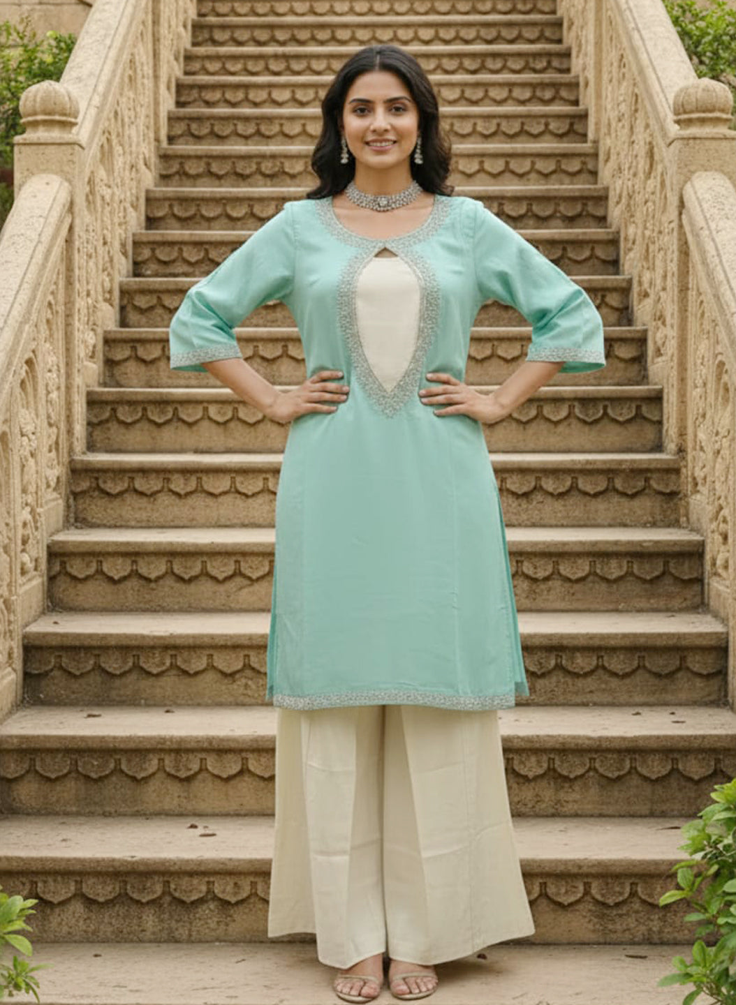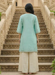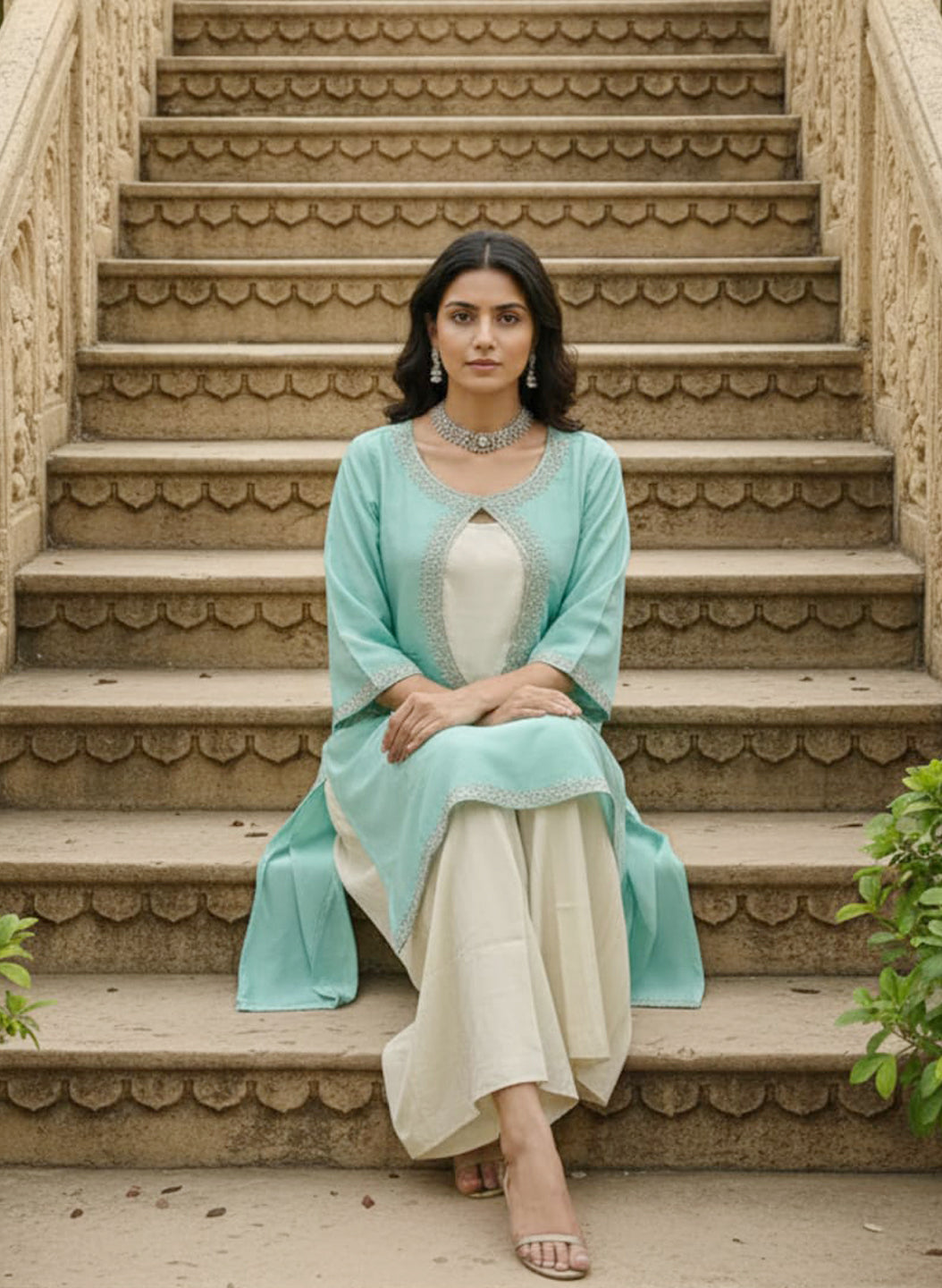 Elevate your wardrobe with this versatile short shrug crafted from pure mulmul chanderi fabric. The ensemble features an intricately embroidered shrug paired with a silk inner and palazzo pants, offering multiple styling possibilities. Wear the complete set for a polished, coordinated look, or mix and match the inner and palazzo separately for contemporary versatility. The lightweight chanderi construction ensures comfort throughout the day, while the embroidered detailing adds sophisticated elegance. Perfect for both casual gatherings and semi-formal occasions, this three-piece combination delivers exceptional value and style flexibility.