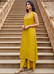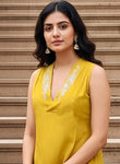 Tangy yellow embroidered A-line sleeveless CO-ORD SET
