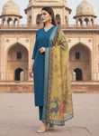Make a bold statement with this Teal Pure Viscose Silk Kurta Pant Set, styled with a sleek V-neckline and paired with tonal comfort-fit pants for a refined, effortless elegance.