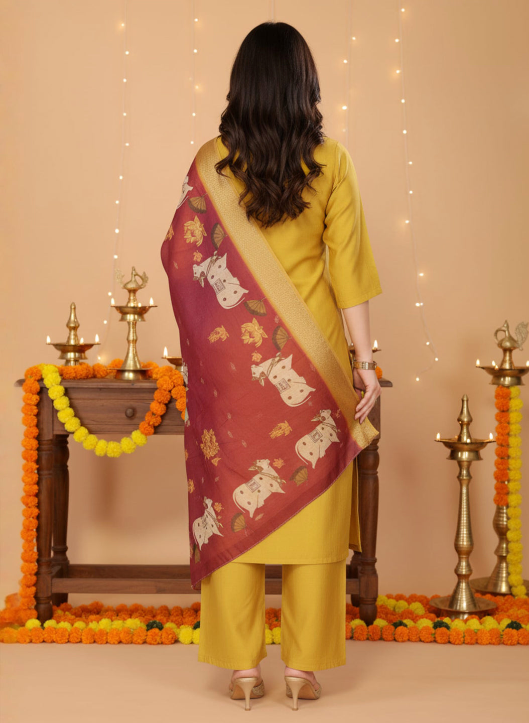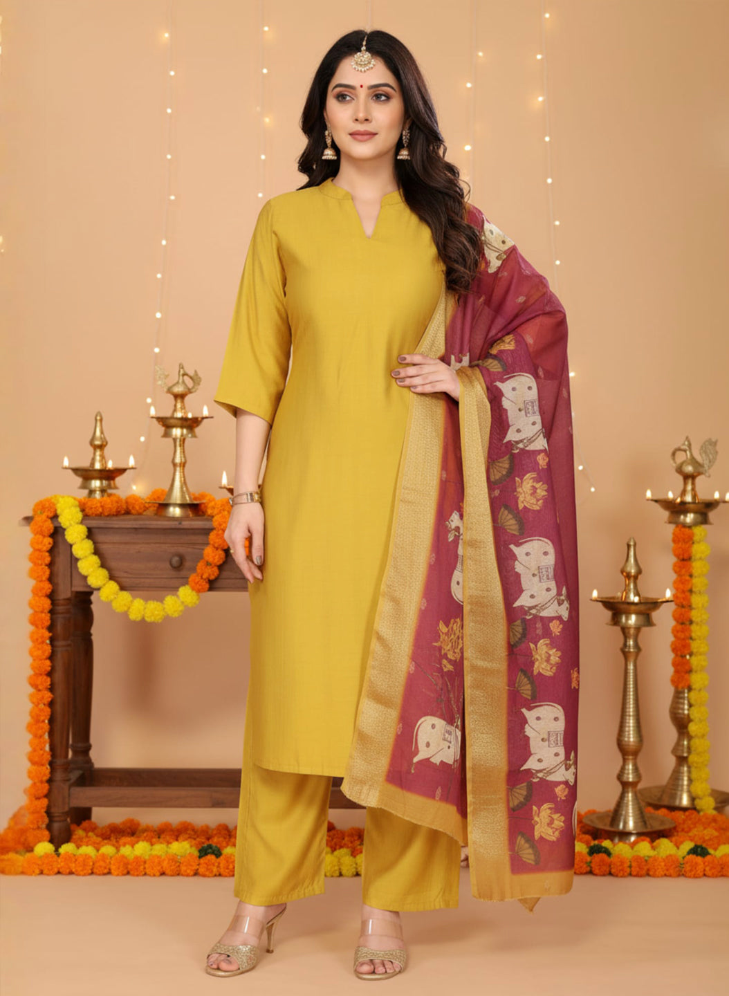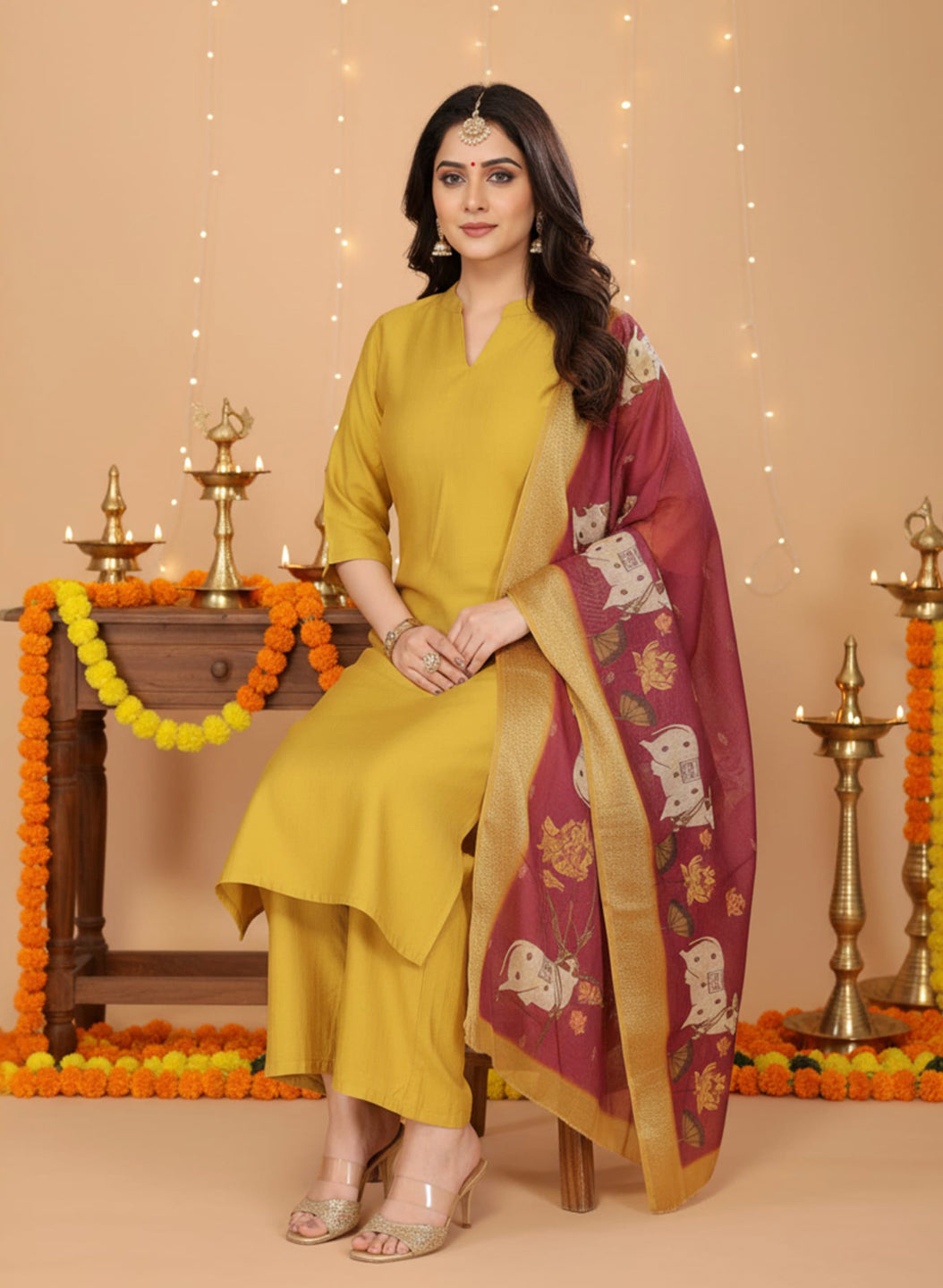 Bring sunshine to your ethnic wardrobe with this mustard yellow Kurta Pant Set, radiating warmth and cultural charm.